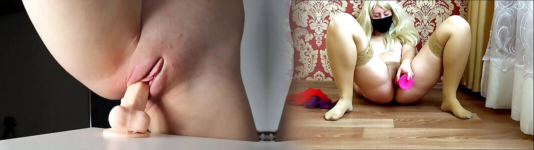 Desperate teen riding dildo with her tight pussy on the kitchen table